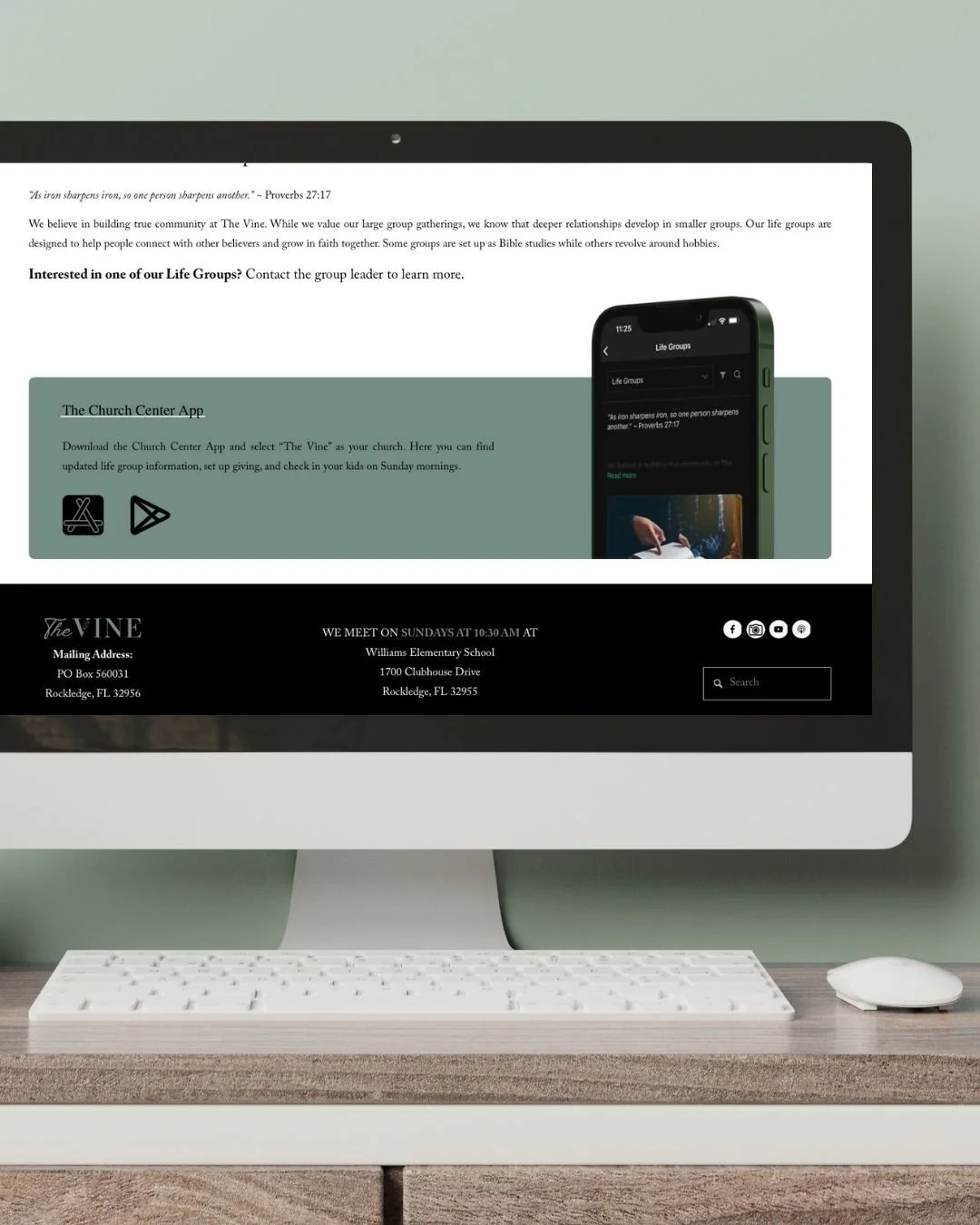 • Customized Squarespace designs including Planning Center integration and custom Canva images